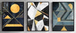 Modern Aesthetic Wall Art Set – 3 Wooden Frames (8x11”) with Geometric Gold & Black Designs | Easy Wall Mounting with Double Tape